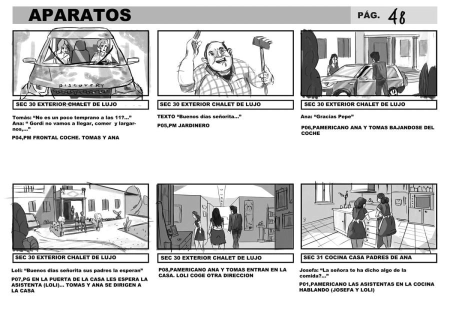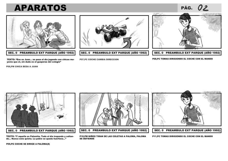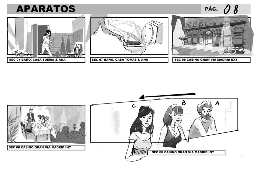 Storyboard per “Aparatos”, una commedia spagnola interrotta prima delle riprese. Ho realizzato uno storyboard che cattura le dinamiche di un gruppo di amici adulti, alle prese con relazioni complicate, tradimenti e situazioni imbarazzanti. Ogni scena trasmette comicità e momenti romantici, dando vita a un progetto ricco di energia e risate.